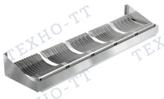 Полка настенная для сушки посуды, с пластиковыми кассетами и поддоном для воды из нержавеющей стали AISI 430 толщиной 0,5. Вместимость - 25 штук. Наличие подгибов по периметру полки исключает опасность травм.