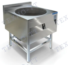 Плита с встроенным казаном объемом 50 литров, на подставке. Корпус из нержавеющей стали марки AISI 430 толщиной 0,8 мм, чаша чугунная, крышка алюминиевая. Подставка из нержавеющей стали марки AISI 430. Мощность 6 кВт, питание 380 В. 9 уровней мощности. Поставляется в собранном виде.
