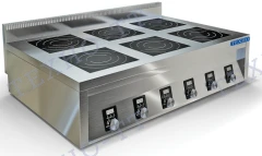 Для ресторанов и кафе: Мощные встраиваемые модули или стационарные плиты на 4-6 конфорок.