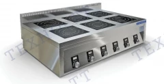 На нашем сайте представлены настольные шестиконфорочные индукционные плиты с конфорками мощностью 3,5 и 5 кВт, с высотой борта 100 мм. Это компактные, практичные модели, изготовленные из нержавеющей стали. В индукционных плитах отсутствуют раскаленные поверхности, открытый огонь, что позволяет использовать оборудование на объектах с высокими требованиями к пожарной безопасности.