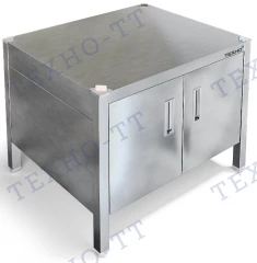 Подставки изготовлены из нержавеющей стали марки AISI 430. В ассортименте подставки открытые, закрытые, с распашнами дверками и дверьми-купе.