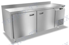Охлаждаемый стол для кег, с бортом высотой 50мм, боковое расположение агрегата. Столешница и корпус из нержавеющей стали марки AISI 430. Задняя панель и дно из оцинкованной стали. 2 двери, удлиненный, температурный режим -2...+10, напряжение 220В, мощность 480Вт, внутренний объем стола 570л, полезный объём стола 520л. Компрессор (Испания). Хладон R-134. Петля доводчик (Польша). Нога опорная круглая, регулировка 50мм (Италия). Поставляется в собранном виде.