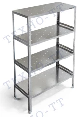 Стеллаж с перфорированными полками из AISI304, стойки уголок крашеной стали
