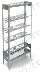 В каталоге «Техно-ТТ» представлены стеллажи, которые собираются из надёжного металлического каркаса и полок с кассетами. Кассеты бывают двух видов — из пищевого пластика и из нержавеющей стали. Они имеют ячейки, в которые удобно расставлять тарелки или стаканы. Посуду помещают вертикально, благодаря чему вода стекает быстрее, а сама конструкция остаётся чистой и удобной в уходе.