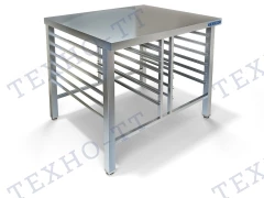 Назначение: Предназначен для хранения подносов и для установки на неё пароконвектавтомата и другого оборудования. Характеристики: Стол-подставка имеет четыре уровня полозьев для размещения гастроемкостей GN 1/1.Штыри на верхней столешнице предназначены для установки ножек пароконвектавтомата. Материал: Стол-подставка изготовлена полностью из нержавеющей стали марки AISI 304 или 430.