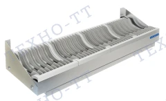 Полка настенная для сушки посуды разборная из нержавеющей стали марки AISI 304 толщиной 0,8мм, 1 ур - кассета из нержавеющей стали марки AISI 304 толщиной 0,8мм на 23 тарелки, поддон из нержавеющей стали марки AISI 304 толщиной 0,8мм, боковина из листа 1,5мм. Полка поставляется в собранном виде.