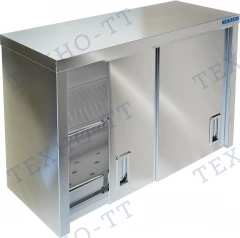 Размещают над моечной ванной в моечном отделении, либо над производственным столом в кухонных цехах. Полка-шкаф цельносварная снабжена дверцами купе, благодаря чему не занимает пространство кухни при открытии дверей, внутри имеется одна кассета для сушки посуды на 35 тарелок и поддон для 50 стаканов, изготовлено все из пищевой нержавеющей стали (ПН-322 и ПН-324 нержавеющая сталь марки AISI 304, ПН-022 и ПН-024 нержавеющая сталь марки AISI 430). Полки с артикулом ПН-322и ПН-022 имеют заднюю стенку из оцинкованного металла, полки с артикулом ПН-324 и ПН-024 имеют заднюю стенку из нержавеющей стали. В полке предусмотрен поддон для сбора жидкости. Полка крепится к стене при помощи кронштейнов. Рекомендуем крепить полку к влагоустойчивым поверхностям.
