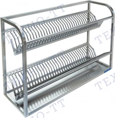 Чтобы обеспечить безопасную и долговременную эксплуатацию подвесных открытых полок для посуды, изготовитель использовал сталь марки AISI 304. Из нержавейки сделан каркас и кассеты – решетки с ячейками, в которые вставляются тарелки. Внизу навесной полки для сушки посуды прикреплен металлический поддон, для сбора воды. Разумная, обоснованная качеством, цена станет приятным сюрпризом, как для оптовых, так и для индивидуальных покупателей.