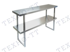 Настольные полки используются для увеличения рабочего пространства на кухне. Устанавливаются на столы и мойки при помощи шурупов. Есть одноярусные (ПН-810) и двухярусные (ПН-820) варианты исполнения. Имеют сборную конструкцию, изготовлены полностью из пищевой нержавеющей стали марки AISI 430.