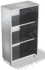 Стеллаж закрытый (шкаф) без дверей из нержавеющей стали, три полки. Предназначен для посуды и хранения хлеба.