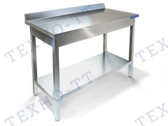Cтол на нержавеющем каркасе из AISI304, столешница из AISI304 с бортом с усилением из ЛДСП, внизу полка