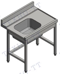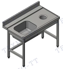 Столы изготовлены из нержавеющей стали марки AISI 304, так как имеют постоянный контакт с водой. Каркас сварной из профиля 40х40. Столешница с бортом и специальной направляющей для кассеты. Столы могут быть с полкой или обвязкой, а также с отверстием под отходы и ванной.
