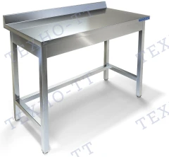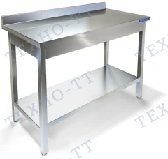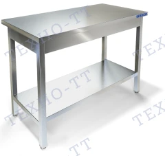 Стол производственный с объемным бортом высотой 70мм, столешница из нержавеющей стали марки AISI 430 толщиной 0,8мм, ЛДСП толщиной 32мм. Каркас разборный из трубы 40х40 нержавеющей стали марки AISI 430 толщиной 1,2мм. Обвязка из трубы 40х20 нержавеющей стали марки AISI 430 толщиной 1,2мм. Регулируемые опоры. Стол поставляется в разобранном виде.