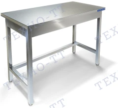 Стол производственный без борта, столешница из нержавеющей стали марки AISI 430 толщиной 0,8мм, ЛДСП толщиной 32мм. Каркас разборный из трубы 40х40 нержавеющей стали марки AISI 430 толщиной 1,2мм. Обвязка из трубы 40х20 нержавеющей стали марки AISI 430 толщиной 1,2мм. Регулируемые опоры. Стол поставляется в разобранном виде.