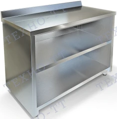 Стол-тумба без дверей с бортом высотой 70мм. Столешница из нержавеющей стали марки AISI 430 толщиной 0,8мм, ЛДСП толщиной 32 мм. Корпус и полка из нержавеющей стали марки AISI 430 толщиной 0,8мм. Задняя стенка из оцинкованной стали толщиной 0,55мм. Регулируемые опоры. Стол поставляется в собранном виде.