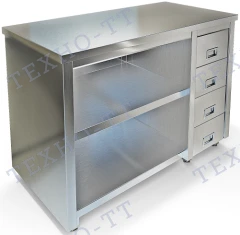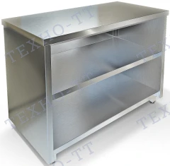 Открытая конструкция делает процесс работы быстрее: не нужно открывать дверцы, чтобы взять инвентарь. Нержавеющая сталь легко чистится и не впитывает запахи. Разнообразие моделей позволяет подобрать вариант под любую задачу — от компактных столов для небольших кухонь до массивных тумб с несколькими ящиками.