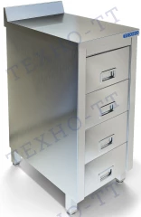 Такое оборудование помогает поддерживать порядок и экономит место: закрытые секции надёжно скрывают содержимое, а сама рабочая поверхность остаётся свободной. Нержавеющая сталь сохраняет внешний вид даже при интенсивной работе, легко отмывается и выдерживает частый контакт с моющими средствами. Разнообразие исполнений даёт возможность адаптировать стол-тумбу под любой технологический процесс.