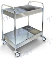 Тележка сервировочная двух ярусная, каркас разборный из трубы 20х20 нержавеющей стали марки AISI 304 толщиной 1,2 мм. Полка из нержавеющей стали марки AISI 304 толщиной 0,8мм. Тележка поставляется в разобранном виде.