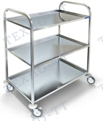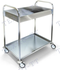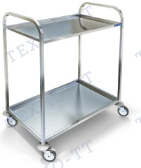 Тележка для сбора посуды двух уровневая. Карка разборный из нержавеющей стали марки AISI 304 толщиной 1,2мм. Полки из нержавеющей стали марки AISI 304. Тележка поставляется в разобранном виде.