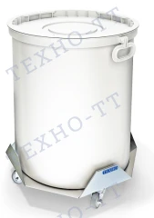 Тележка с баком из нержавеющей стали под отходы. Бак сварной из нержавеющей стали марки AISI 304 толщиной 1мм на 60 литров. Платформа из нержавеющей стали марки AISI 430 толщиной 2мм. Колесо диаметром 50мм поворотное, грузоподъемность 50кг. Поставляется без ручки. Тележка поставляется в собранном виде.