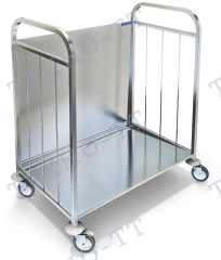 Тележка для подносов закрытая с трех сторон. Каркас сварной из нержавеющей стали марки AISI 304 толщиной 1,2мм. Полка из нержавеющей стали марки AISI 304 толщиной 0,8мм. Тележка поставляется в собранном виде.